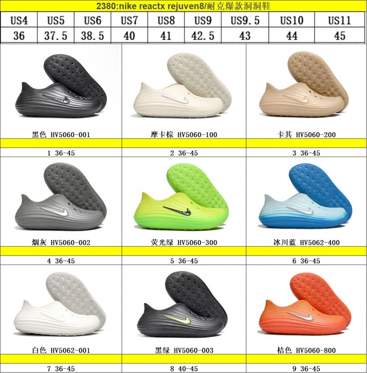 Nike ReactX Rejuven8 Fashionable and Versatile Children's Crocs-4191